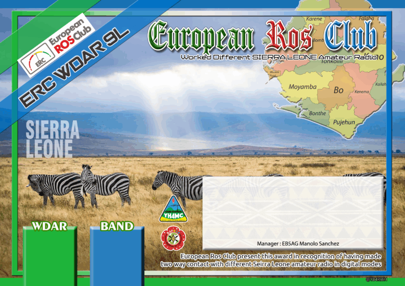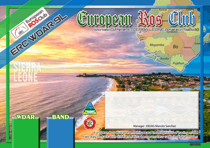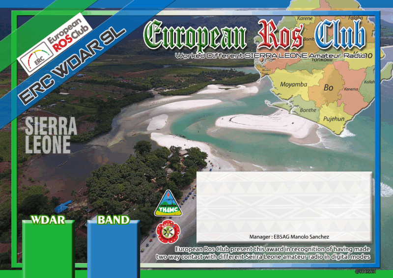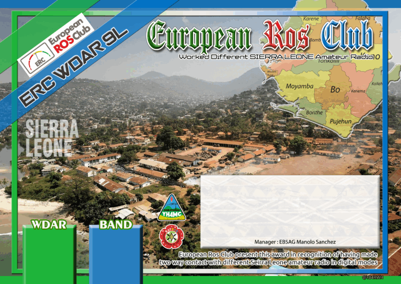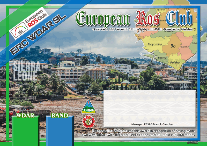 European Ros Club (ERC) emite Certificados de ESTACIONES diferentes Trabajadas en SIERRA LEONA con el prefijo 9L