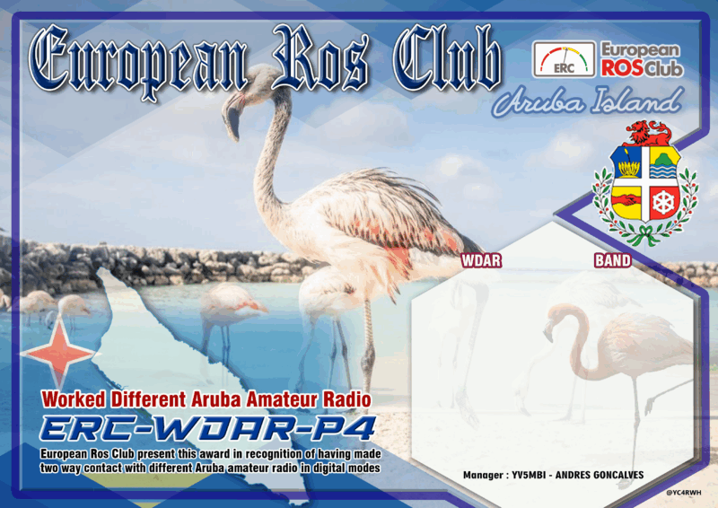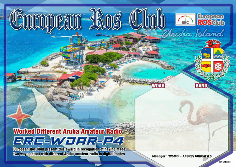 European Ros Club (ERC) emite Certificados de ESTACIONES diferentes Trabajadas en ARUBA ISLAND con el prefijo P4