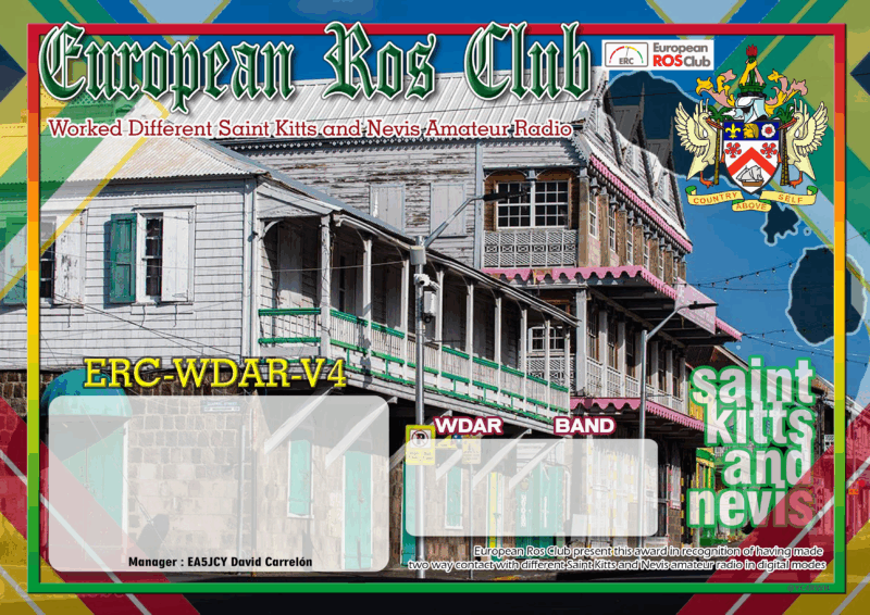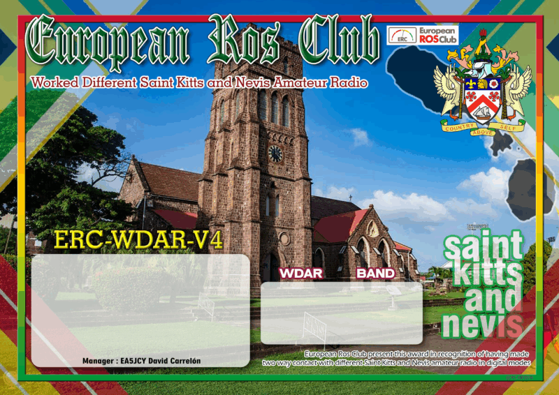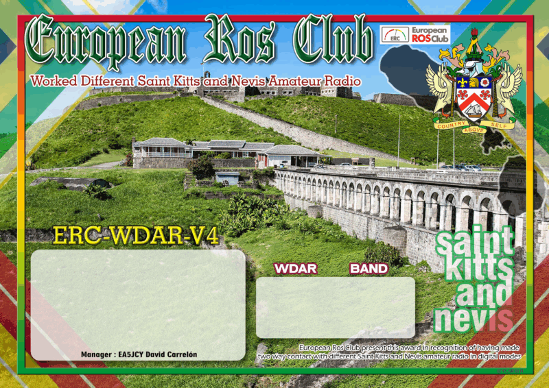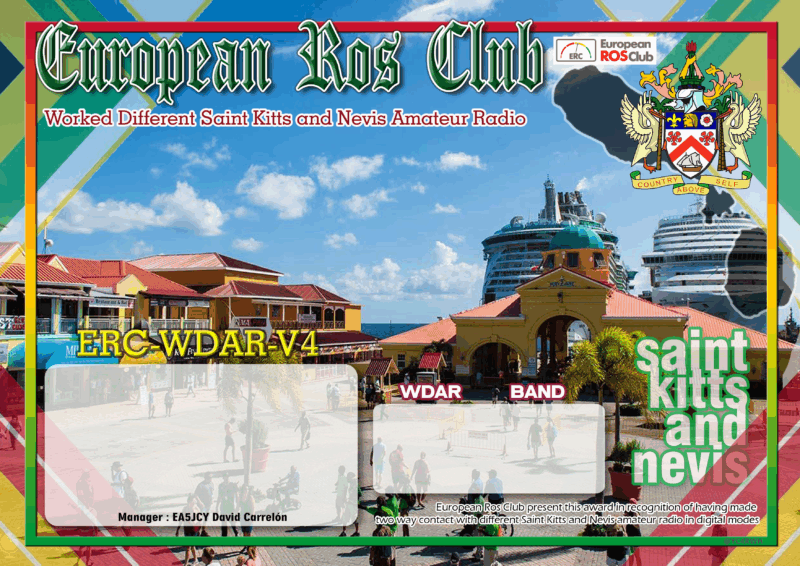 European Ros Club (ERC) emite Certificados de ESTACIONES diferentes Trabajadas en SAINT KITTS AND NEVIS con el prefijo V4