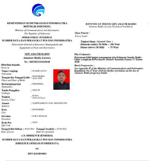 DESCARGO DE RESPONSABILIDAD: Si usted es el propietario de este indicativo y desea modificar, actualizar o eliminar cualquier dato, utilice Registrarse en ERC, y realice los cambios necesarios